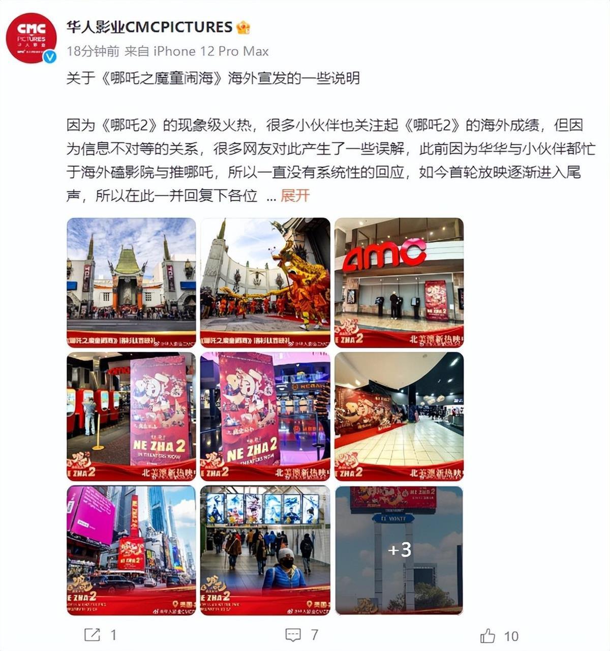 3月11日,@华人影业CMCPICTURES(以下简称华华)发布关于《@哪吒之魔童闹海》海外宣发的一些说明。