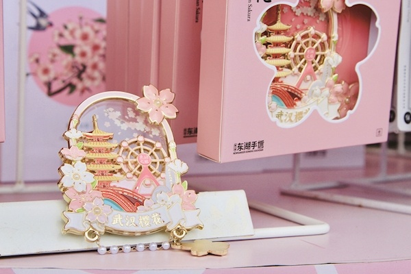 随着东湖樱花季的到来,文创产品和文创市集迎来销售旺季。各种以樱花为主题的文创产品琳琅满目,吸引了众多游客前来选购。