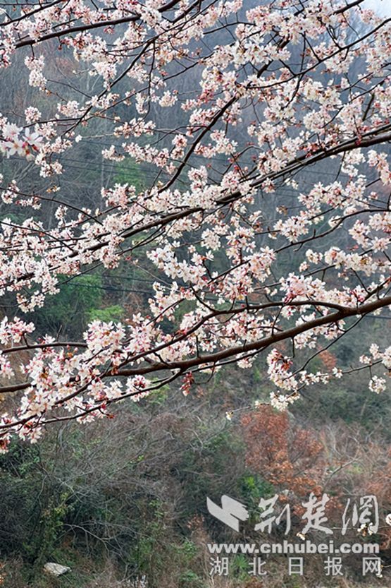 荆楚网(湖北日报网)讯(记者 安从斌 郭炫龙 通讯员 章春梅)3月11日,记者走进荆门市东宝区栗溪镇赵家沟,漫山遍野的野樱花如同粉色的云朵,点缀在翠绿的山峦之间,吸引了众多游客前来踏春赏花。