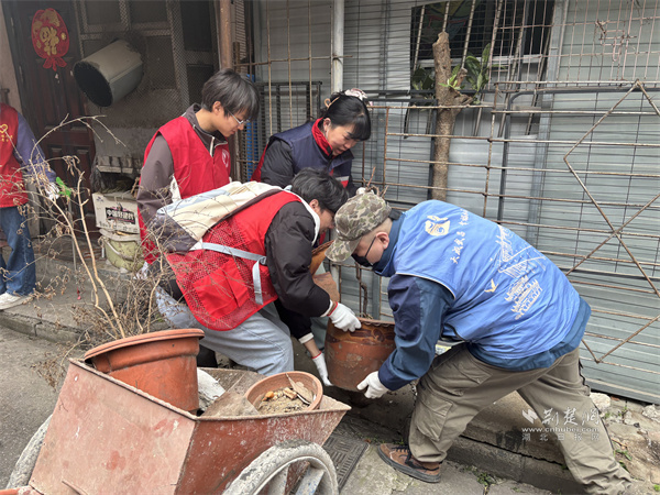 环境焕新激发共建意识。行动中,志愿者们不仅用工具铲除了卫生死角,还以“唠家常”的方式向居民普及消防安全法规和垃圾分类知识。原本被种菜泡沫箱占据的公共空地恢复了整洁,斑驳墙面上的“牛皮癣”广告也被逐一清除。公房居民王女士感慨地说:“楼道敞亮了,心里也踏实了!以后自家门口一定要自觉维护。”社区还推出了“花香西厂”活动,鼓励居民别种菜多种花,推动“被动清理”向“主动参与”转变。