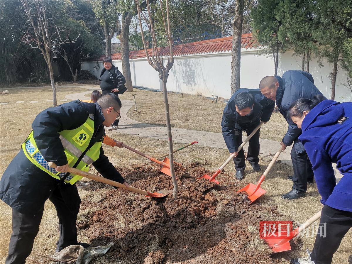 在江夏区武汉南联合党支部所辖各植树点,职工们组成志愿队拿起铁锹、水桶等工具,投入到植树劳动中,大家一起挥锹铲土、扶苗栽种、提水浇灌,每一道工序都一丝不苟。植树现场一片热火朝天的劳动景象,一株株新栽下的苗木迎风而立,生机勃勃。