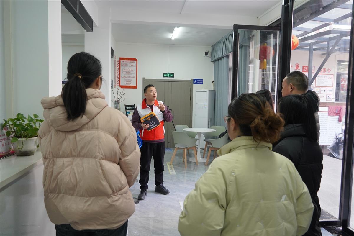 在首批AED配置点之一的白鹤井社区,鹤峰县红十字会工作人员开展急救技能专项培训。培训现场,工作人员化身“急救导师”,通过手把手教学,生动演示了AED的使用方法和注意事项。社区工作人员认真聆听,积极参与互动演练。