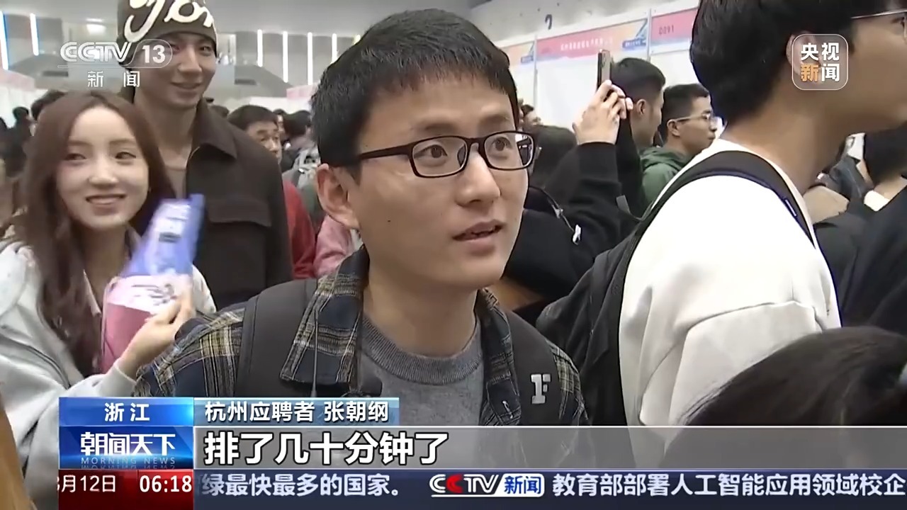 浙江某企业校招负责人 汪琳:大概九成以上都是技术类的岗位,基本上是一些算法的,比如AIGC、大模型、自然语言处理。今年不是AI快速地兴起了,今年我们也是有大概一半都是用来招AI相关的岗位。