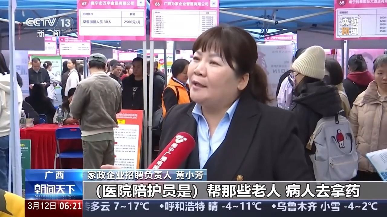 在南宁2025年“春风行动”暨服务实体经济用工专场活动上,医院陪护员岗位备受关注。