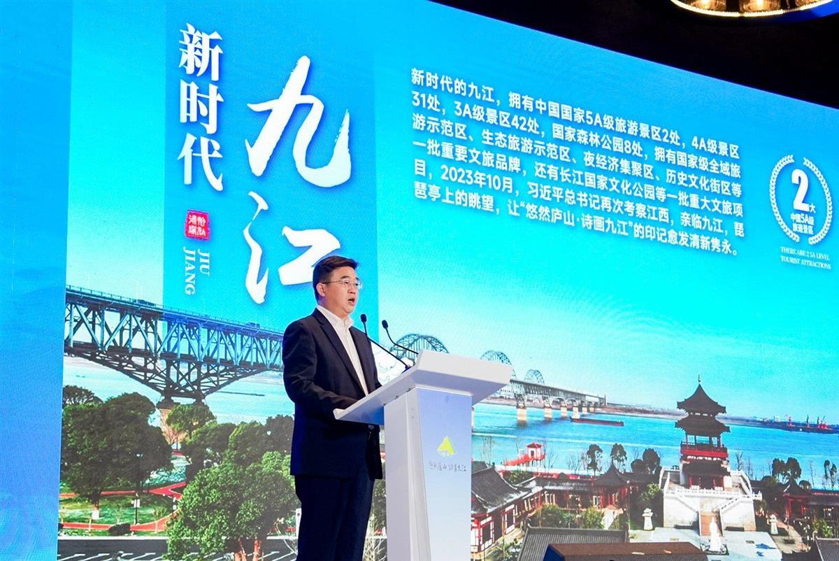 “武汉与九江依江而建、因江而兴,恰似两颗交相辉映的明珠镶嵌在长江之畔。依托长江黄金水道,两地充分放大枢纽优势,提升开放能级,在加快产业转型与区域协同发展中深度互动、携手合作。”活动现场,九江市文广旅局党组书记、局长王建新对九江文旅资源进行了整体推介。从“匡庐奇秀甲天下”的庐山,到被誉为“中国第一大淡水湖”的鄱阳湖;从享有“中国最美湖光山色”美誉的庐山西海,到被誉为“中国四大书院之首”的白鹿洞书院……一幅幅精美的图片,一段段生动的讲解,将九江丰富的自然景观、深厚的历史文化底蕴和独特的人文风情展现得淋漓尽致,令现场观众心驰神往。