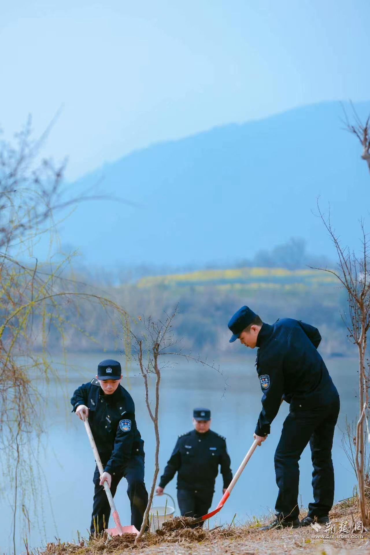 铁锹翻土育新林。在第47个植树节来临之际,湖北各地公安机关纷纷组织警力开展了义务植树活动,为荆楚大地再添新绿。