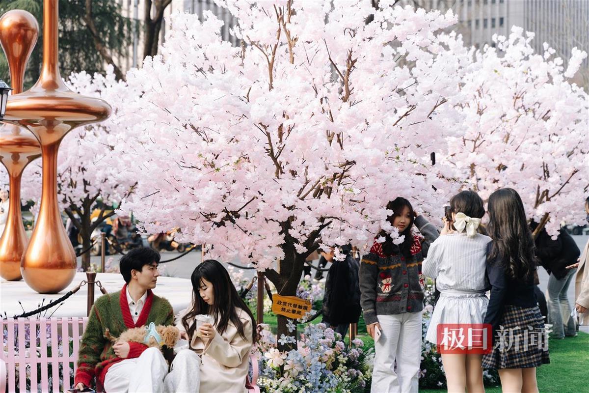 正值赏樱季,武汉万象城也装扮一新,浪漫的樱花IP场景区亮眼吸睛,成为这个春天美丽的风景线,不少市民游客前往拍照打卡,留下美好纪念。