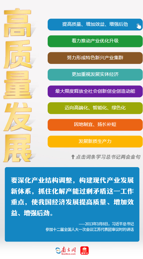 “高质量发展”是习近平总书记同代表交流的高频词。2021年参加十三届全国人大四次会议青海代表团审议时,总书记具体阐述了高质量发展的深刻内涵:“高质量发展不只是一个经济要求,而是对经济社会发展方方面面的总要求;不是只对经济发达地区的要求,而是所有地区发展都必须贯彻的要求;不是一时一事的要求,而是必须长期坚持的要求。”