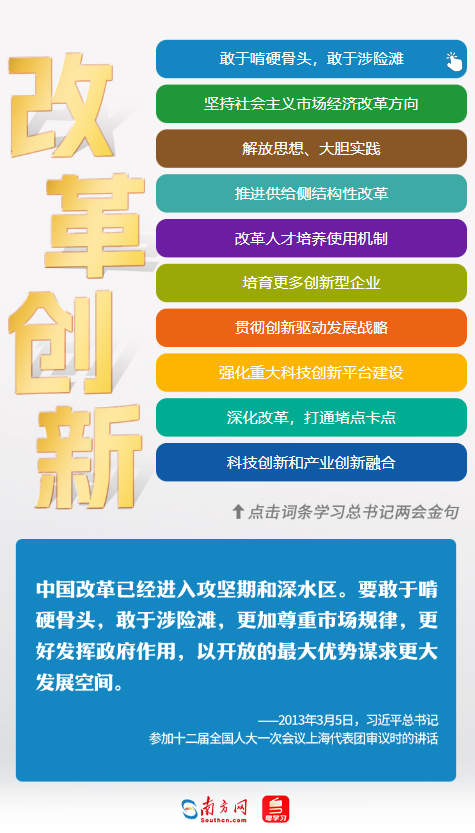 “改革”“创新”是习近平总书记与代表们常常提及的热词。