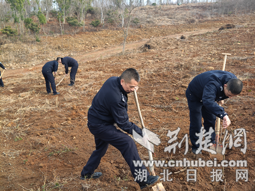 京山公安在温泉街道、孙桥镇等植树现场,民辅警挥锹铲土、扶苗填坑,大家分工协作,默契配合,一抹抹藏蓝身影与点点青绿交相辉映。