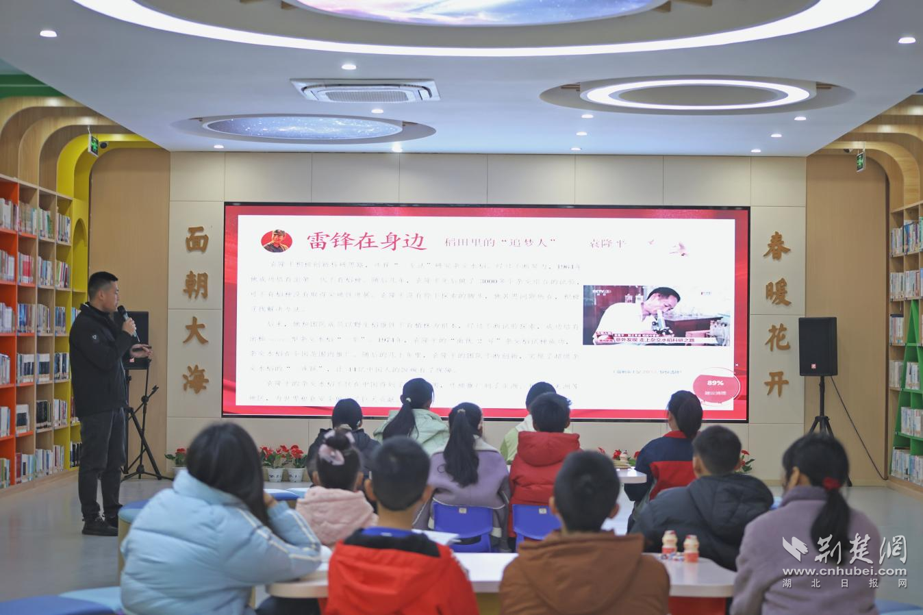 荆楚网(湖北日报网)讯(通讯员常梦星)3月8日上午,黄冈市团风县图书馆青年之家爱心课堂内掌声阵阵、童声朗朗。团风县老兵宣讲团成员、兵教师倪永江走进县图书馆青年之家爱心课堂,开展“弘扬雷锋精神”主题宣讲。倪永江以其军人经历为纽带,为20名小学生带来一堂生动鲜活的“学雷锋”思政课。
