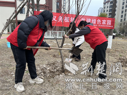 3月12日上午,漳河新区双喜街道双喜社区联合荆门城投公司,在双喜小区开展“共建绿色社区 共享绿色生活”植树节主题活动。