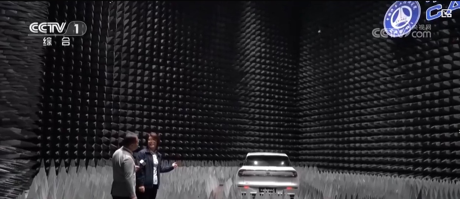这里是位于重庆的中国汽车工程研究院无线通信测试实验室。一走进实验室我们就可以看到,这里布满了密密麻麻的上万个锥形体,它们看起来很尖锐,但一摸起来却是软软的。其实,这些“温柔的小刺头”都是用来吸收电磁波的特殊材料,这是为了保障实验的精准性。