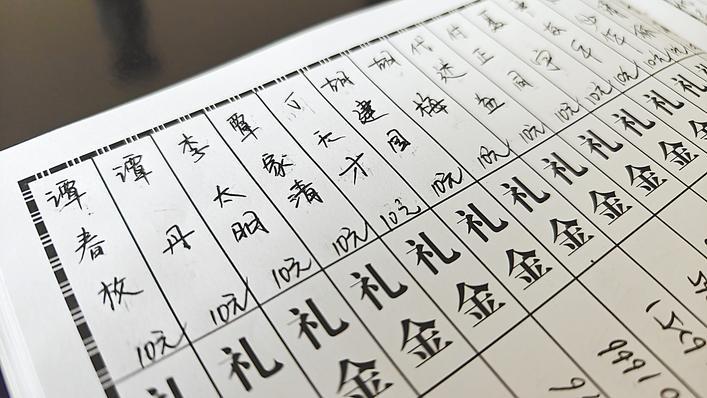 在当地,老人过世是家族大事,亲朋好友前来送行都要随礼,当地俗话叫作“赶情”。如果不记礼金,这笔人情就不算完整。“不能让老人的遗嘱成遗憾。”覃家清说,大家一合计,为了让亲朋好友能“赶情”,礼金标准就定成10元。
