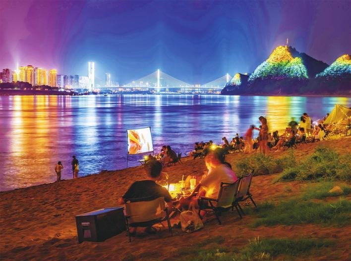 2021年后,小区环境愈发完善,江边泥泞的道路变成了宽敞平坦的石板路,岸边的灯光则为夜晚的沙滩增添了一抹浪漫色彩。随着我市亮化工程推进,对岸的西陵区沿江一带披上了亮丽的灯带,形成了城市灯光秀。