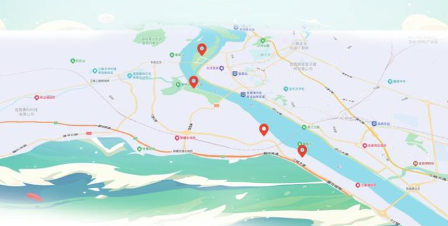 站在打卡点,眼前是开阔的长江,满载集装箱的货船缓缓驶过,右边是伍家岗长江大桥,江对岸则是林立的高楼。白日天气晴朗时,江面波光跃动,倒映着错落的楼影;雨天时,高楼大厦在雾中若隐若现,给城市的天际轮廓增添了几分神秘;暮色四合时,霓虹灯亮起,继续妆点江边风景。
