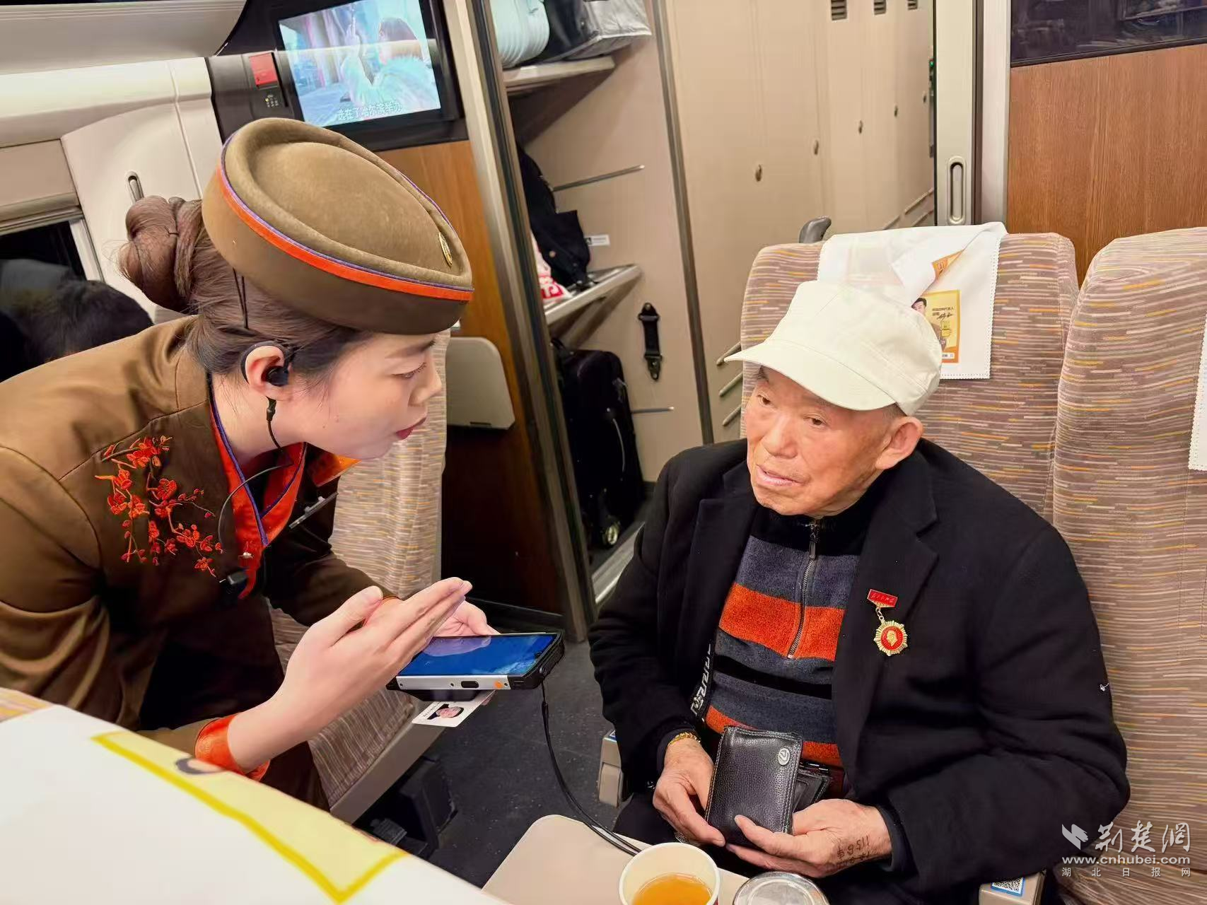 荆楚网(湖北日报网)讯(通讯员卢佳)3月12日,在广州白云开往巴东的G1156次列车上,一位年过八旬的老人独自乘车,面对陌生的环境和漫长的旅途,显得有些焦虑和无助。列车员宋辉主动上前关怀,让老人的旅途充满了温暖。