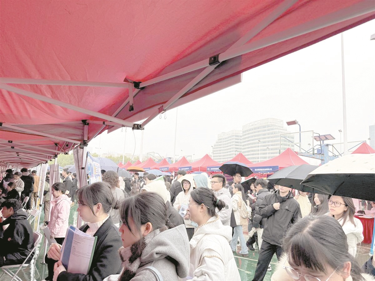 雨水挡不住学子求职热情 实习生胡懿杰摄