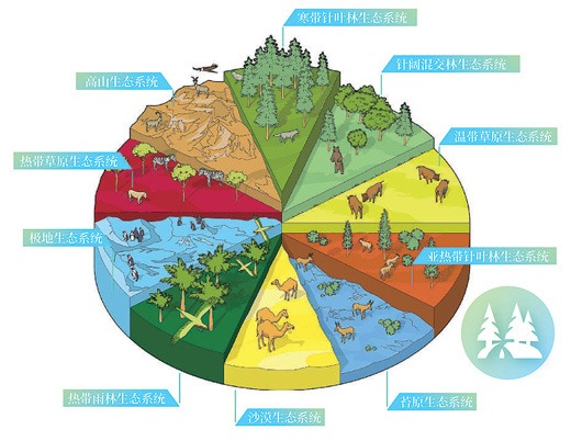 不同类型的陆地生态系统示意图。 中国科学院南京地质古生物研究所供图 |