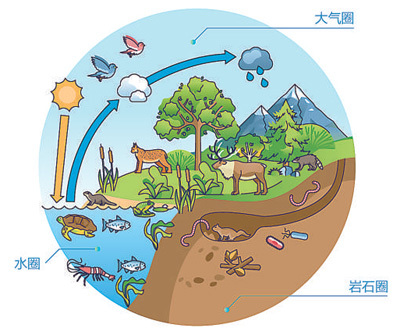 大气圈、水圈、岩石圈示意图。 资料图片 |