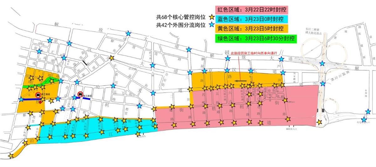3月 23日 1时起至本区域比赛结束,长江隧道所有进出口、长江公铁隧道五福路出口均临时封闭。长江隧道和长江公铁隧道作为城市重要的交通通道,在赛事期间封闭,将对跨江交通产生较大影响。市民需要提前规划好出行路线,选择其他过江通道。
