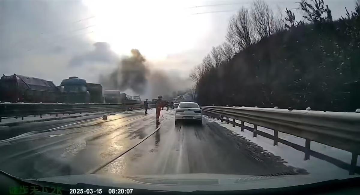 15日13时许,当地一名司机对极目新闻记者称,15日上午他从事发高速旁的地方公路经过时看到,现场明火已扑灭。同时,事发高速出现堵车,有车辆下高速绕行,导致地方公路也出现了堵车,“昨晚当地下雪,道路结冰了。”