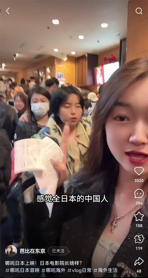 “我提前花500日元(约24元人民币,记者注)注册了会员,还是没有抢到昨日池袋电影院的首场票。”3月15日上午,极目新闻记者联系上网名为“芭比在东京”的小红书博主李女士。她说,随后她花2000日元(97.4元人民币)幸运地抢到了另一家新宿的电影院当晚7点50分的票。去看的时候发现电影院里挤得水泄不通,因为主要是针对华人的限定上映,放的是中文原声加中英文字幕版,所以前来观影的基本上都是中国人。“感觉像是回到了国内的电影院。”她说,就连同行的日本朋友和电影院的日本工作人员都表示,真的是很难见到如此多人的壮观场面。连上厕所都要排队,她是等到放映中途,才出来上厕所不用等,还好她这次是“二刷”,否则就会错过精彩片段。
