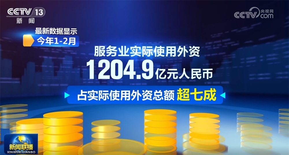 最新数据显示,今年1—2月,服务业实际使用外资1204.9亿元人民币,占实际使用外资总额超七成。全国新设立外商投资企业7574家,同比增长5.8%。