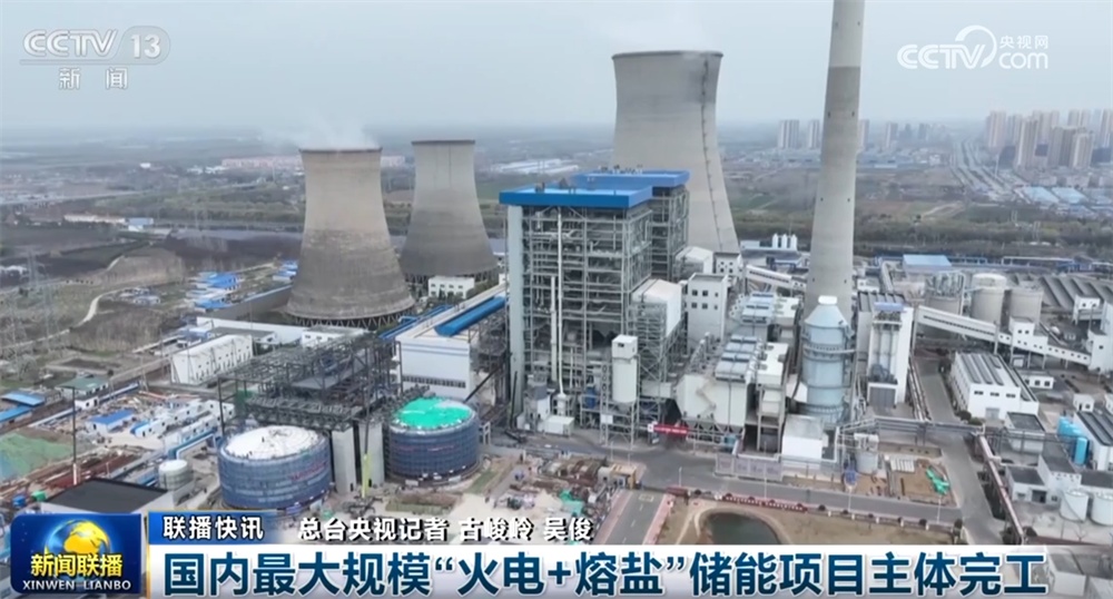 记者3月15日从国家能源集团获悉,我国最大的“火电+熔盐”储能项目在安徽宿州建设完工。项目在原有火电机组上配套了两个熔盐储罐,设计储热容量1000兆瓦时。可在电网低谷时储能,高峰时释放能量,解决机组调峰与供热矛盾,有效提高电网稳定性。