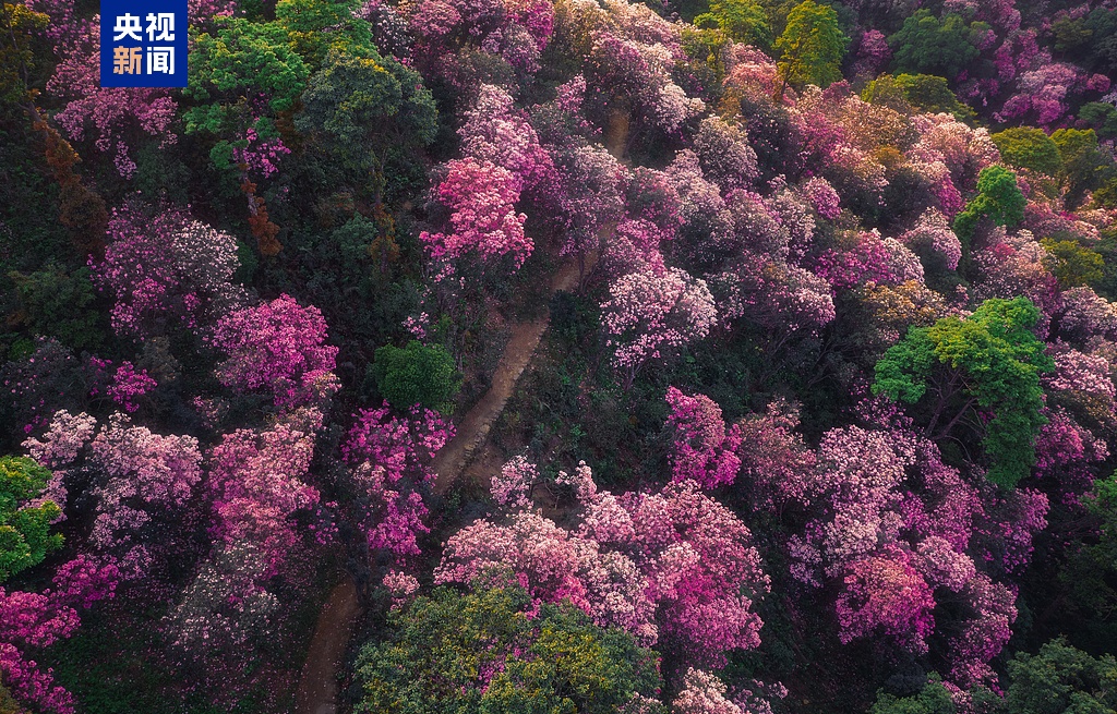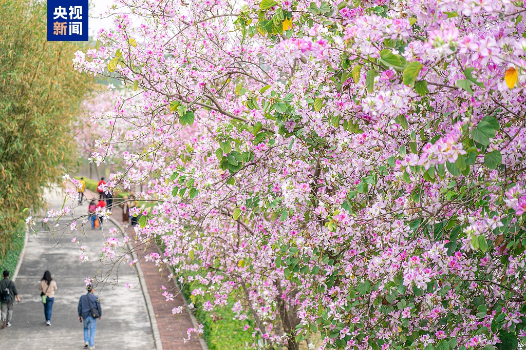 如何以花串景,以景结情?在这个春天里,广东推出了“寻花迹·绿美广东赏花线路”,涵盖5条线路、26个赏花点,华南国家植物园、海珠湿地公园、东莞清溪大王山森林公园等热门景点都纳入其中。而在这些赏花点中的桃花、樱花、紫荆花、禾雀花、吊钟花等特色花卉,吸引了大量游客前来打卡“走花路”。