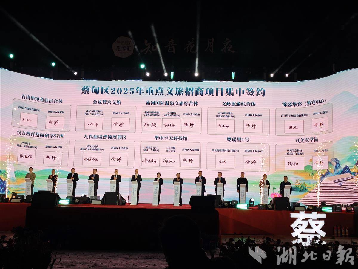 湖北日报讯(记者杨然、通讯员周雄、刘芬)3月16日,武汉花博汇景区花团锦簇、游客云集。当晚,蔡甸区2025年文化旅游消费季启动,签约22个文旅项目,总投资174.94亿元。签约项目覆盖休闲、度假、文娱、康养、研学等文旅消费板块,蔡甸区文旅产业迈向全域精品化、业态多元化、体验深度化的全新阶段。