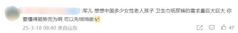 “军儿,想想中国多少女性老人孩子,卫生巾纸尿裤的需求量巨大巨大,你要懂得顺势而为啊,可以先悄悄做”