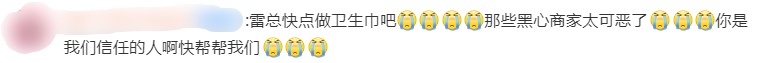 在近几天的雷军微博评论区,均有不少网友在评论区许愿雷军做卫生巾: