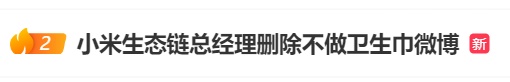 3月18日,#小米生态链总经理删除不做卫生巾微博#冲上微博热搜。