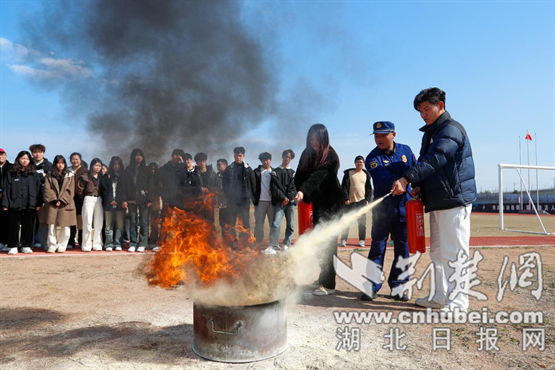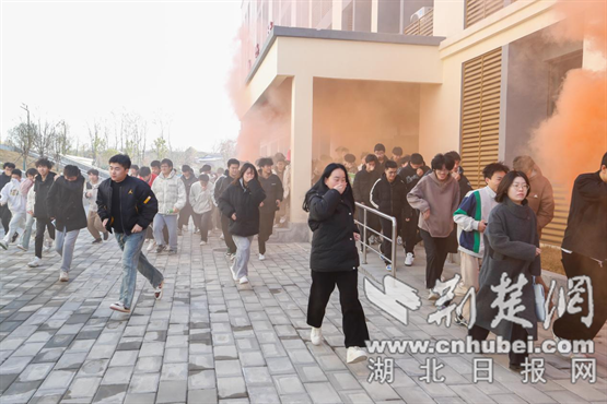 荆楚网(湖北日报网)讯(通讯员 郭敬仁)“教室突发火情,浓烟封锁楼道怎么办?”“实验室设备起火如何3秒扑灭?”3月18日上午9点,一场覆盖全国高校的消防安全公开课在“中国消防”等平台直播开讲。荆门市3所高校、超2万师生同步观看,并开展主题班会、隐患“随手拍”、灭火演练三大实践活动,掀起春季校园消防教育热潮。