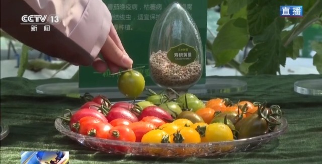 总台记者 苏琪淇:如果说智能装备是这座大棚的筋骨,那么种源攻关就是它的灵魂。虽然这个大棚里种的全是番茄,但是每个品种都有不同。颜色从经典红色到清新绿色,尺寸从硕大饱满到迷你可爱。特别是一种小号的七彩番茄,每一个颜色都有不一样的口味。比如绿色的甜度很高,如果喜欢酸甜口的,就可以尝尝巧克力色的。而这些品种都是由寿光的企业自主攻关繁育的,不仅丰富了老百姓的菜篮子,而且让寿光蔬菜种子的国产化率达到了70%以上,其中番茄、辣椒等多个自主研发的品种已销往俄罗斯、泰国等20多个国家和地区。