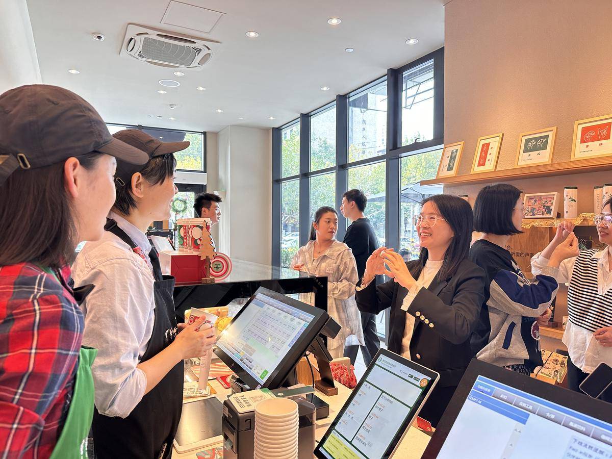 “很多熟客知道我们是‘无声门店’,一进门就会主动扫码下单,打包时也能用数字向听障伙伴准确表达需求。”无声店店长张笑语说,顾客的理解和包容,同事的友爱和互助,给了听障店员很大的支持。