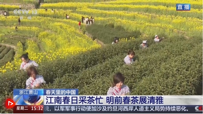 大家看,这些就是新鲜采摘上来的明前茶叶,特别的嫩绿和匀整,冲泡出来的茶汤颜色也是碧绿明亮,闻一下,带有一股淡淡的兰花清香,抿上一口,非常的清洌爽口。当然,江南的春日不仅是油菜的金黄色,还有李花的雪白、樱花的粉黛、兰花的青绿,从空中俯瞰,花海、茶园、山林也相映成趣,美不胜收!