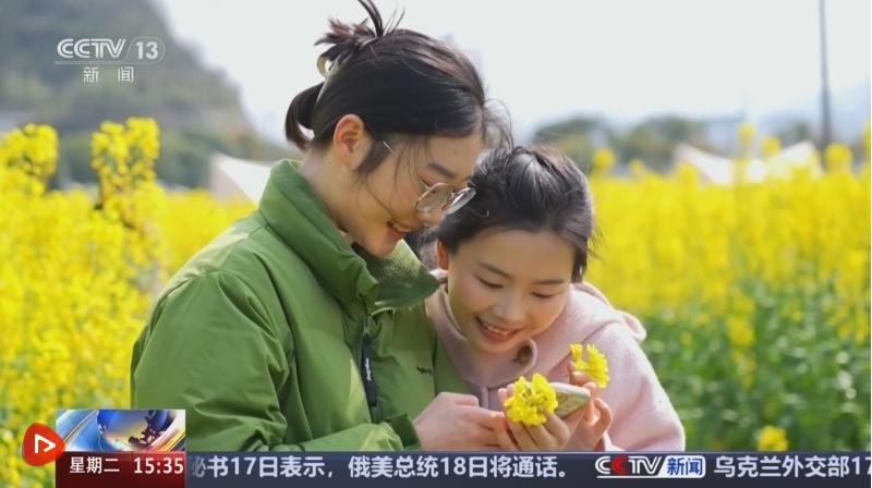 不同的观看角度,让人收获不同的视觉体验。这片油菜花梯田从去年开辟以来,就吸引了2万多名游客纷至沓来,大家在花丛中拍照留影、嬉戏玩耍,定格春日美好的瞬间。