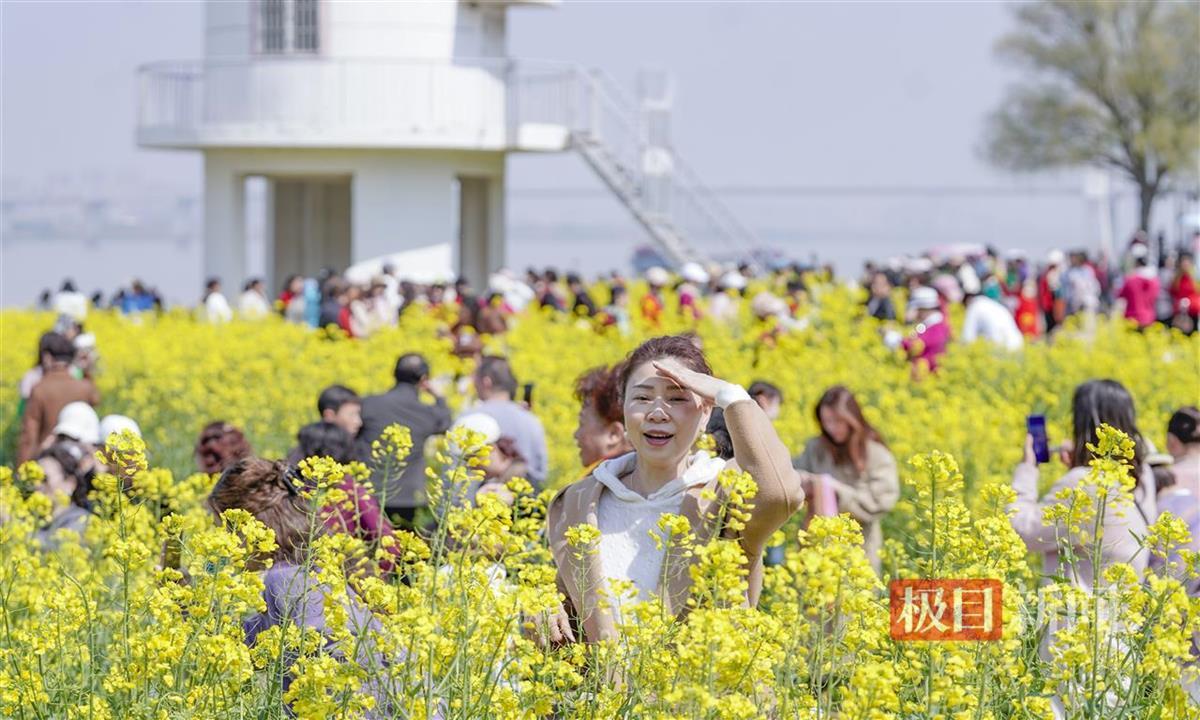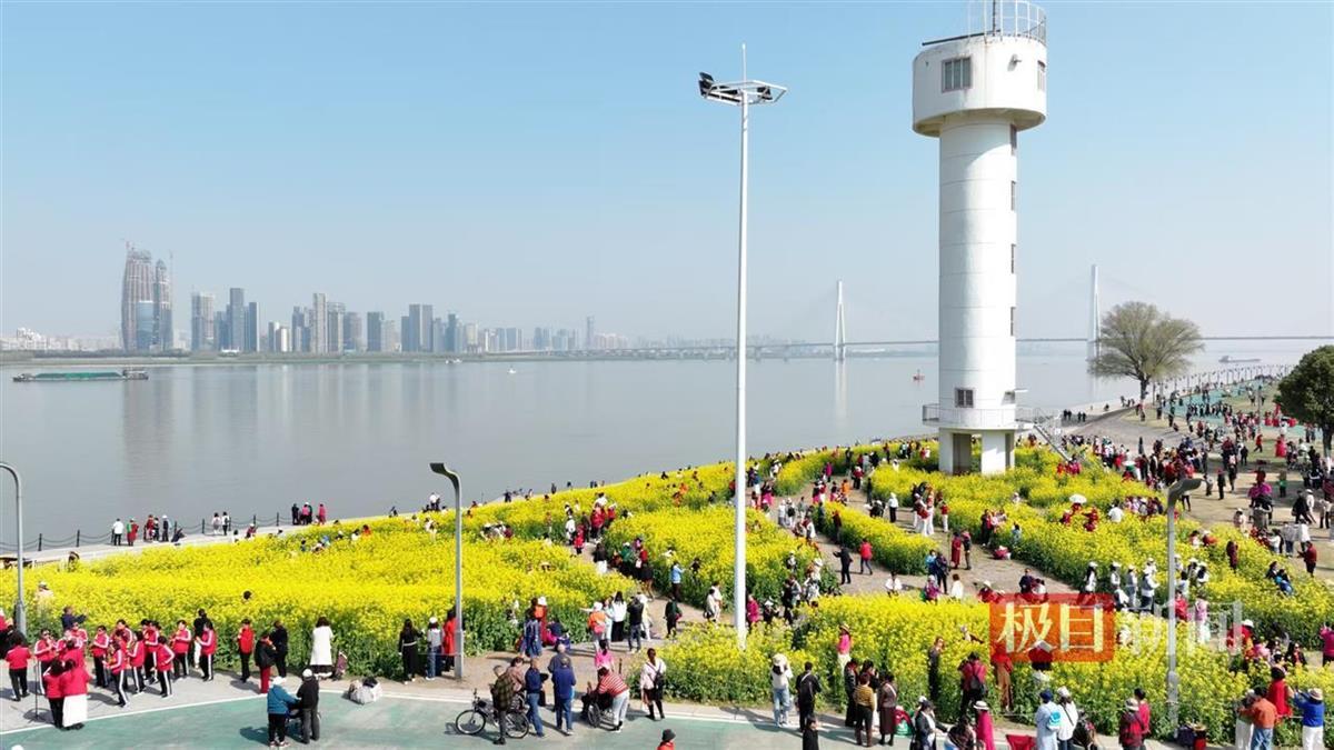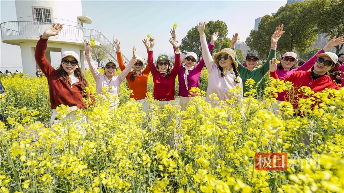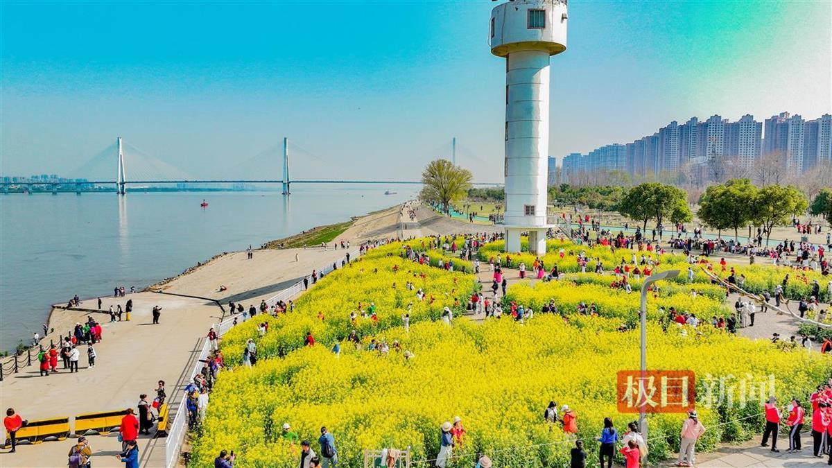 3月19日,在春日暖阳下,武昌江滩灯塔下2000多亩油菜花热烈绽放,风吹花动,花香连绵。盛开的油菜花海吸引了众多市民游客纷至沓来,感受春光,拍照留念。人们在花海前翩翩起舞,欢声笑语在春风中飘荡。连日来,这片金灿灿的油菜花海美景,已火爆出圈。