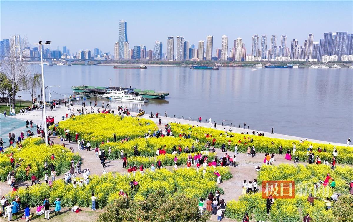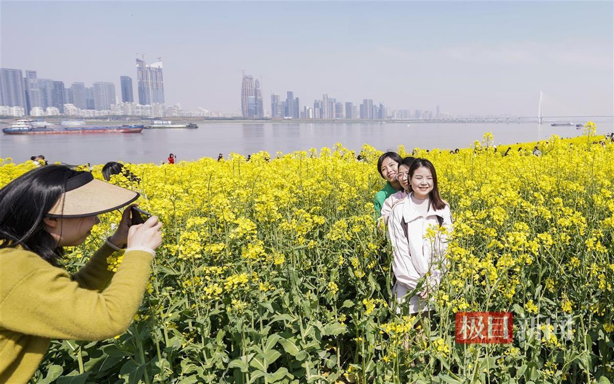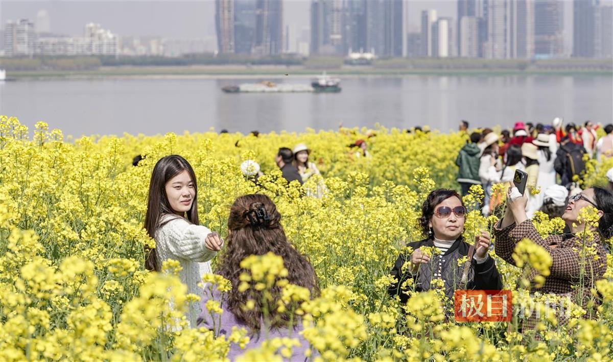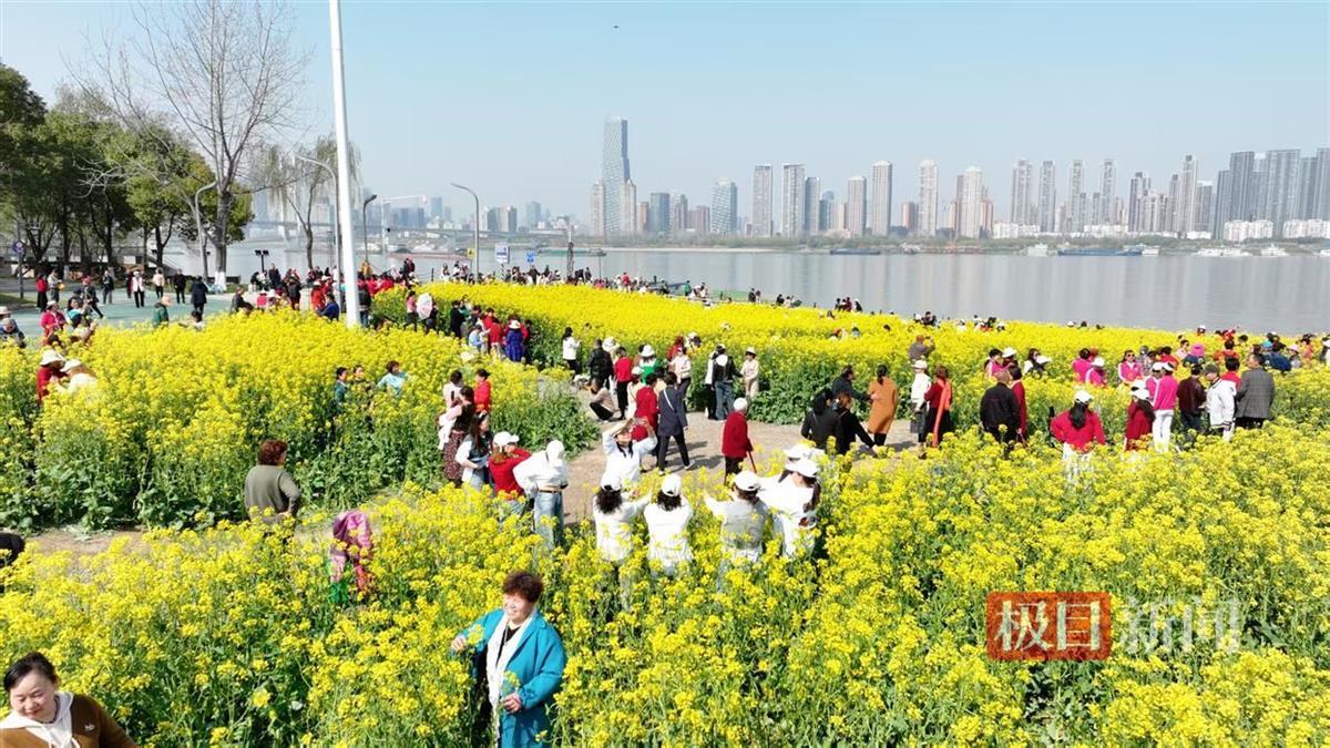 3月19日,在春日暖阳下,武昌江滩灯塔下2000多亩油菜花热烈绽放,风吹花动,花香连绵。盛开的油菜花海吸引了众多市民游客纷至沓来,感受春光,拍照留念。人们在花海前翩翩起舞,欢声笑语在春风中飘荡。连日来,这片金灿灿的油菜花海美景,已火爆出圈。