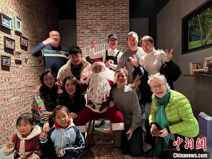 2024年12月,戴伟和路易丝与朋友和客人在“加拿大妈妈菜”餐厅过圣诞节。 (受访者 供图)