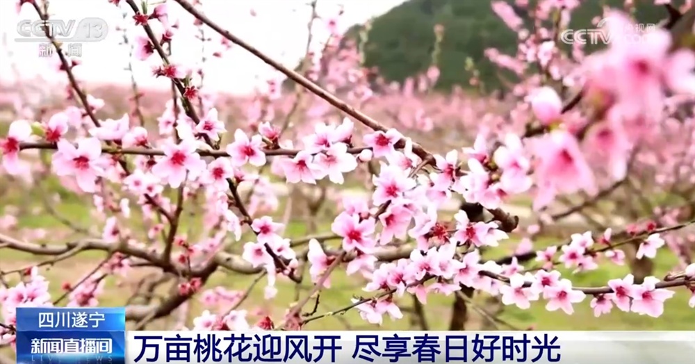 央视网消息:眼下正值桃花盛放的时节,遂宁市安居区拦江镇万亩桃林绽放,吸引众多游客踏青赏景。