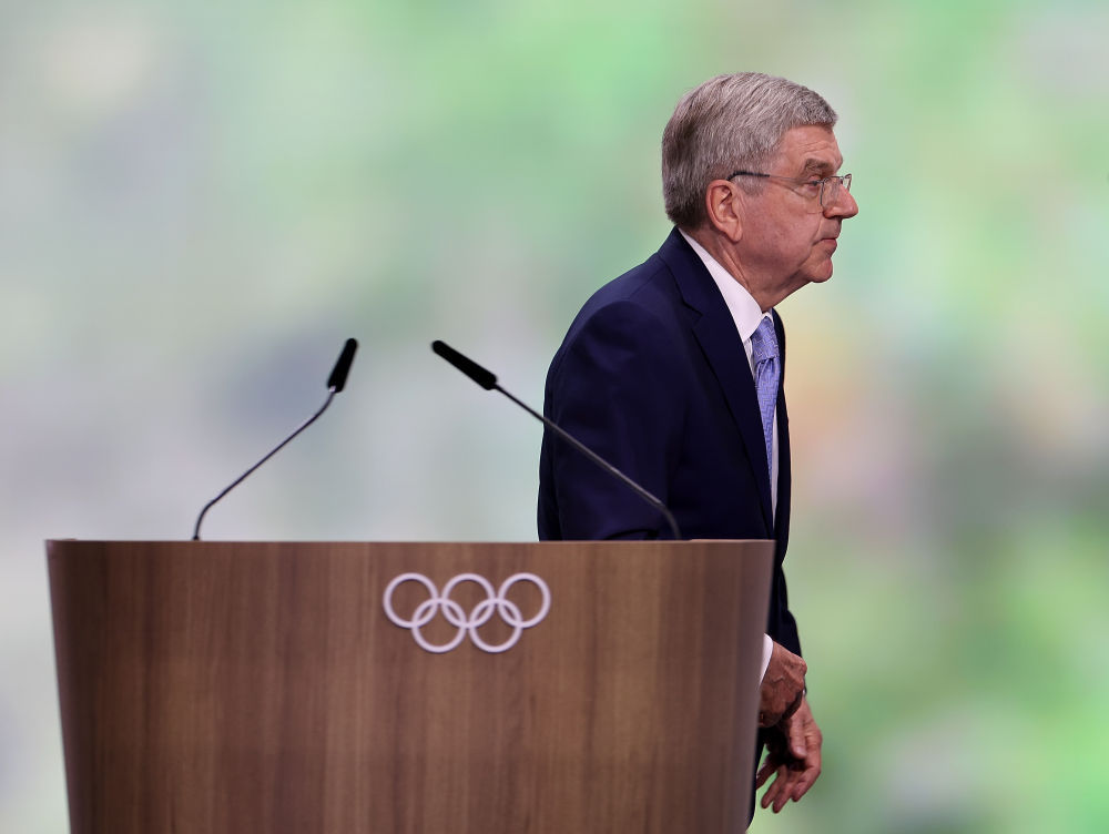3月19日,国际奥委会主席巴赫在会上发言后离开。新华社记者 曹灿 摄