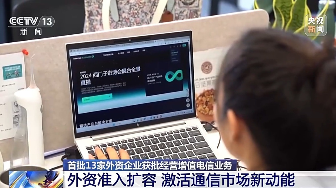 中国信通院政策与经济所国际治理研究部主任 石立娜:这次对外资开放电信市场也是有利于促进我国电信市场发展。同时外资进入我国电信市场其实它也是获得了一个良好的发展环境,比如说互联网信息服务是这次企业申请的一个热门领域,这次首次批复的13家试点企业,有多一半的企业都申请了互联网信息服务这个业务。