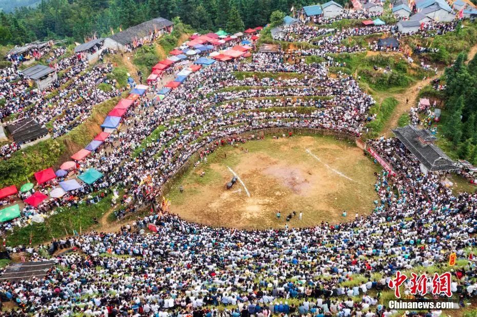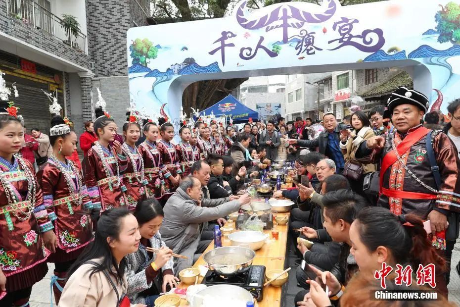 贵州榕江千人同享牛瘪宴。贺俊怡 摄