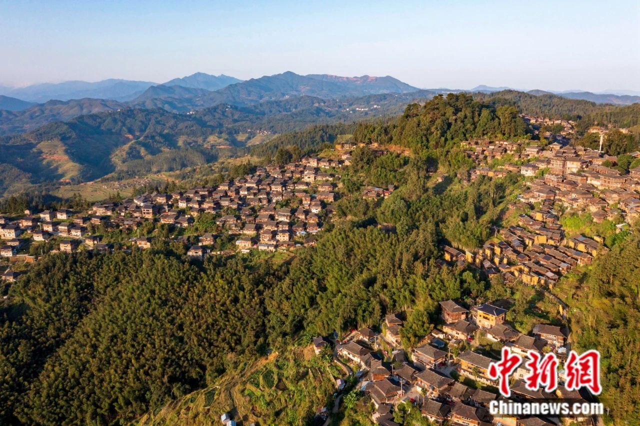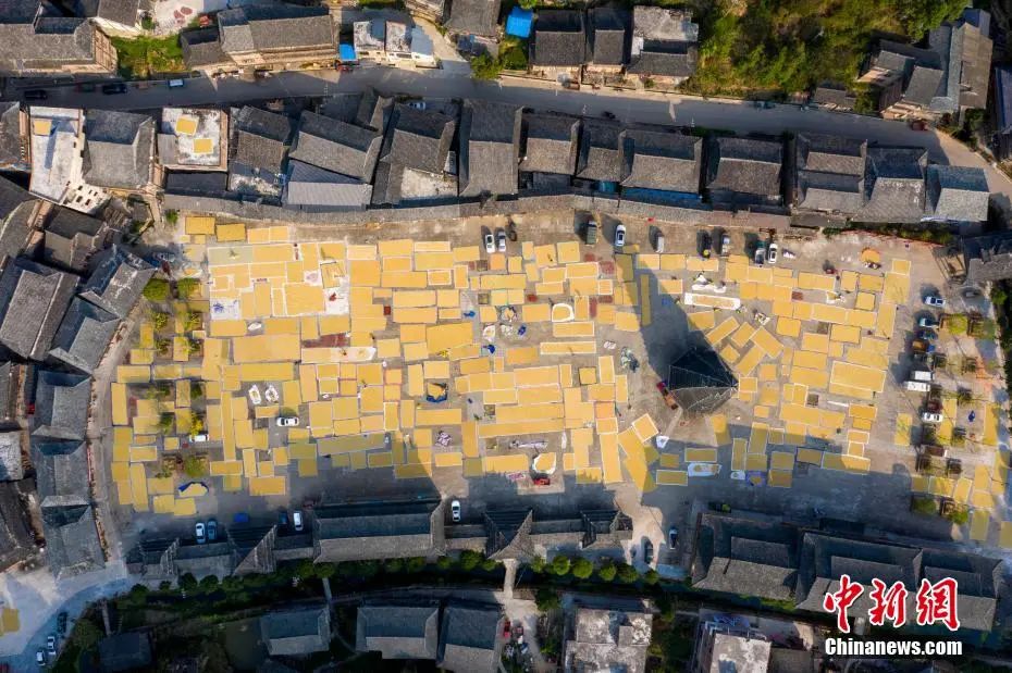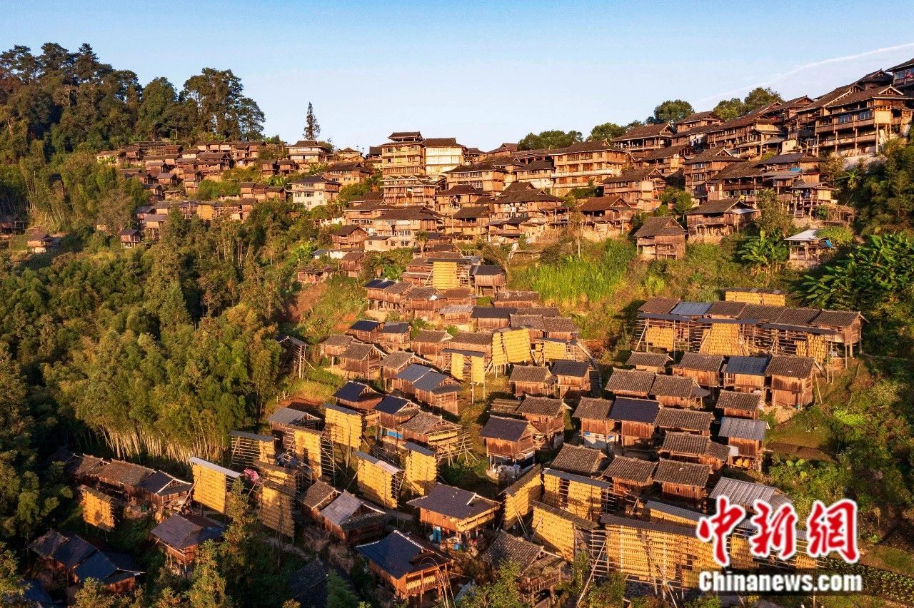 贵州省从江县丙妹镇岜沙苗寨禾晾“晒秋”。吴德军 摄
