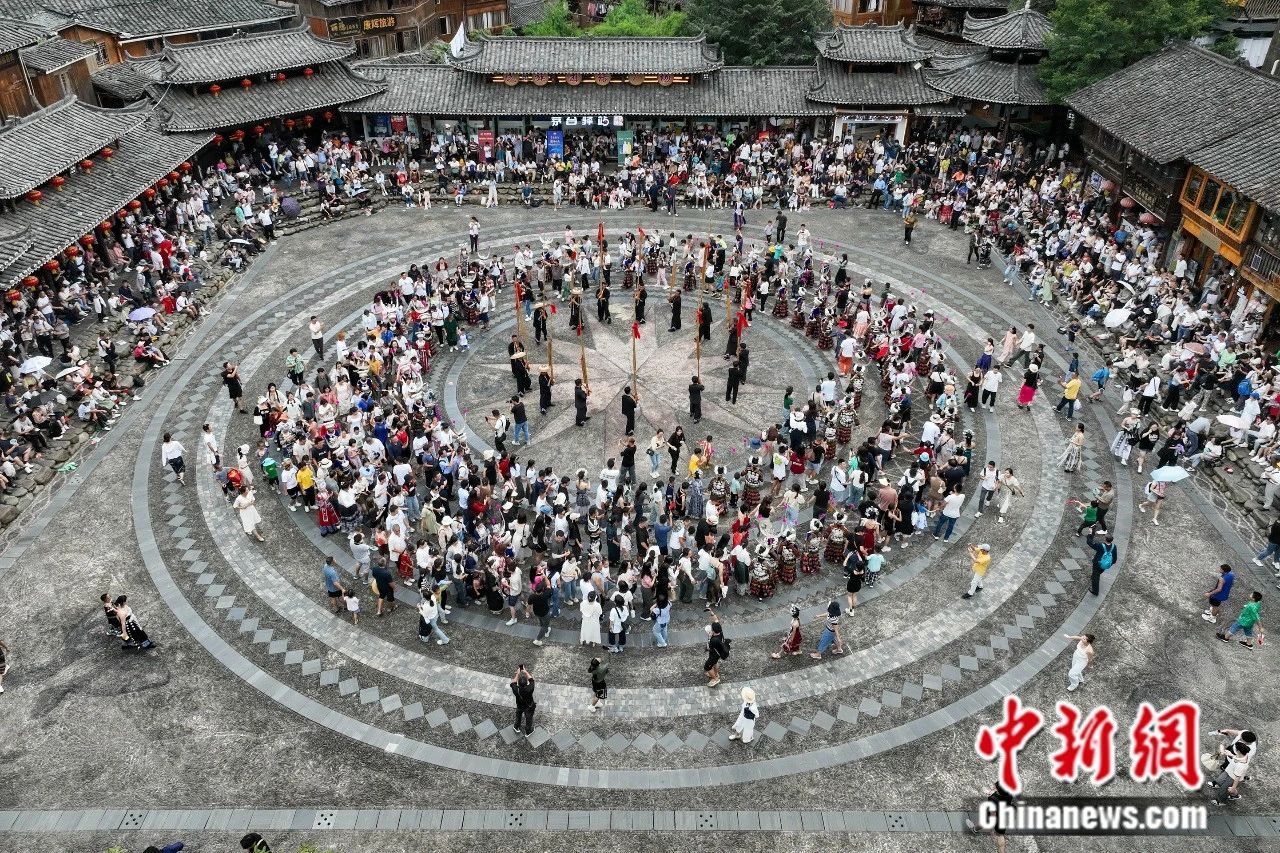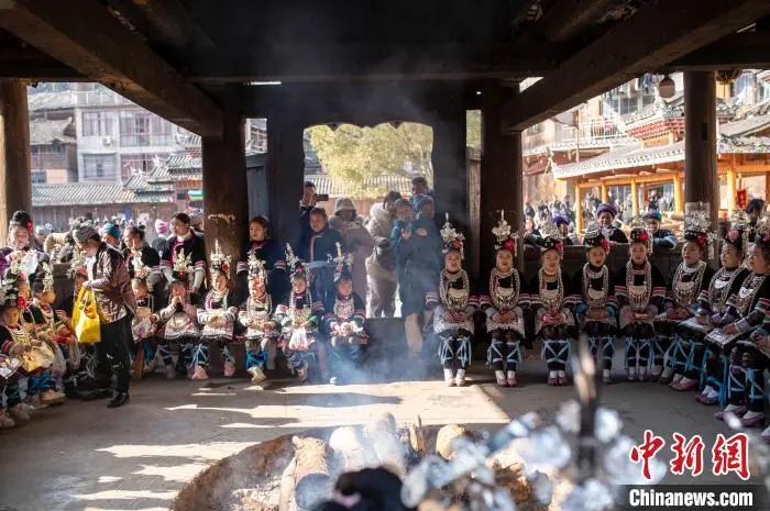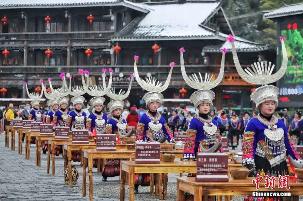 贵州西江苗寨十二道拦门酒。雷山县融媒体中心供图