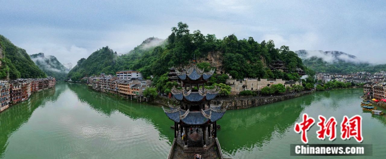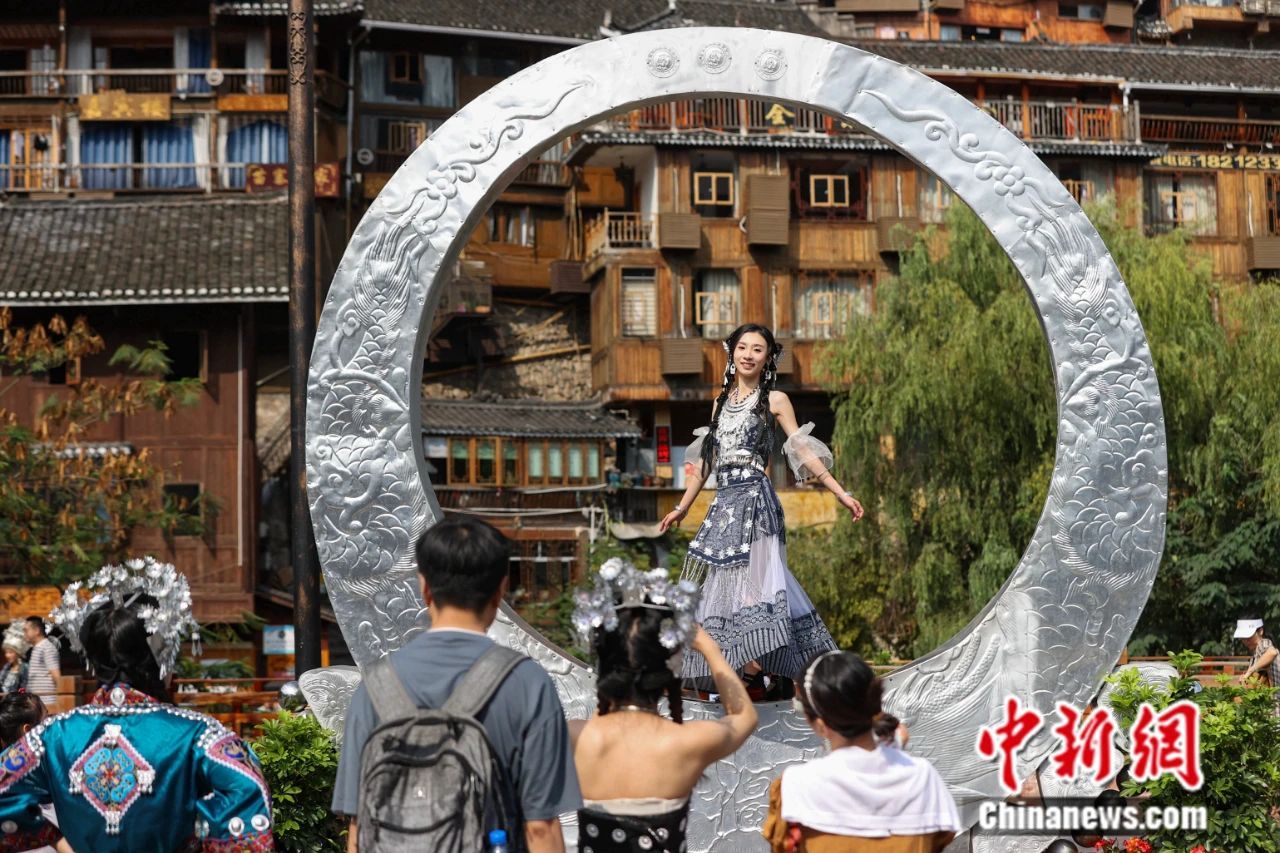 游客在贵州西江千户苗寨游玩。 中新社记者 瞿宏伦 摄