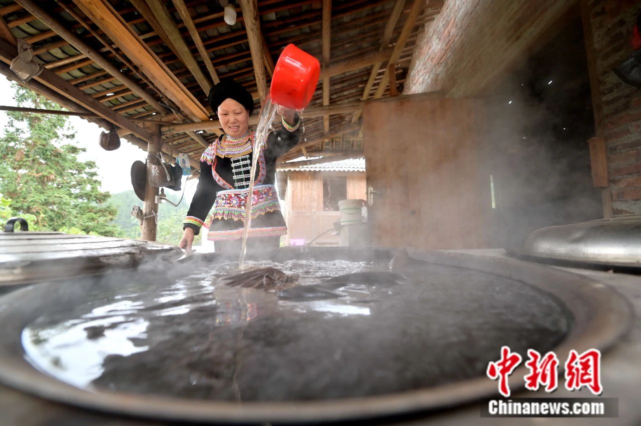 贵州省从江县丙妹镇大塘村五里坡瑶寨的村民在舀药水准备给客人洗浴。吴德军 摄